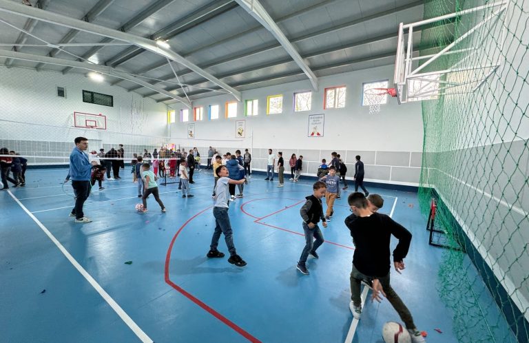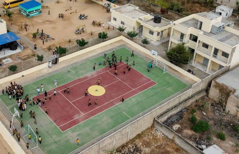 In direkter Nachbarschaft zum Internat wurde 2024 unsere Sporthalle eröffnet, die unseren Kindern vor allem in der kalten Jahreszeit Spiel, Sport und Spaß ermöglichen.