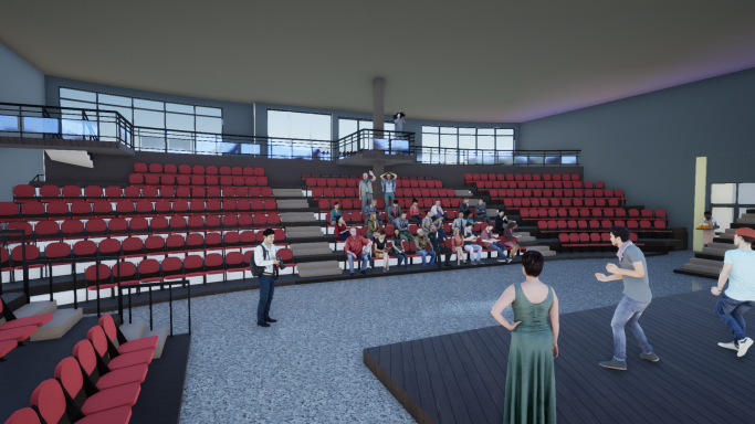 Hierfür werden geeignete Räumlichkeiten in mehreren Stockwerken benötigt, im Besonderen sind im oberen Untergeschoss (das Gebäude wird am Hang errichtet) u.a. eine Nähwerkstatt, eine Schreinerei mit integrierter Instrumentenbauwerkstatt, ein Tonstudio, Begegnungsraum, Chor- und Orchesterprobenräume sowie ein Bandraum geplant. Im Erdgeschoss sind zudem große Seminarräume mit verschiebbaren Wänden, eine Bibliothek, ein Museum, ein Klavierübungsstudio, eine Gesundheitsberatungsstelle sowie Arbeitsvermittlungsbüro vorgesehen. Zwei weitere Stockwerke runden das Zentrum neben Büros und Ausbildungsräumen mit einem großen multifunktionell nutzbaren Konzert- und Theatersaal unter dem Dach ab.